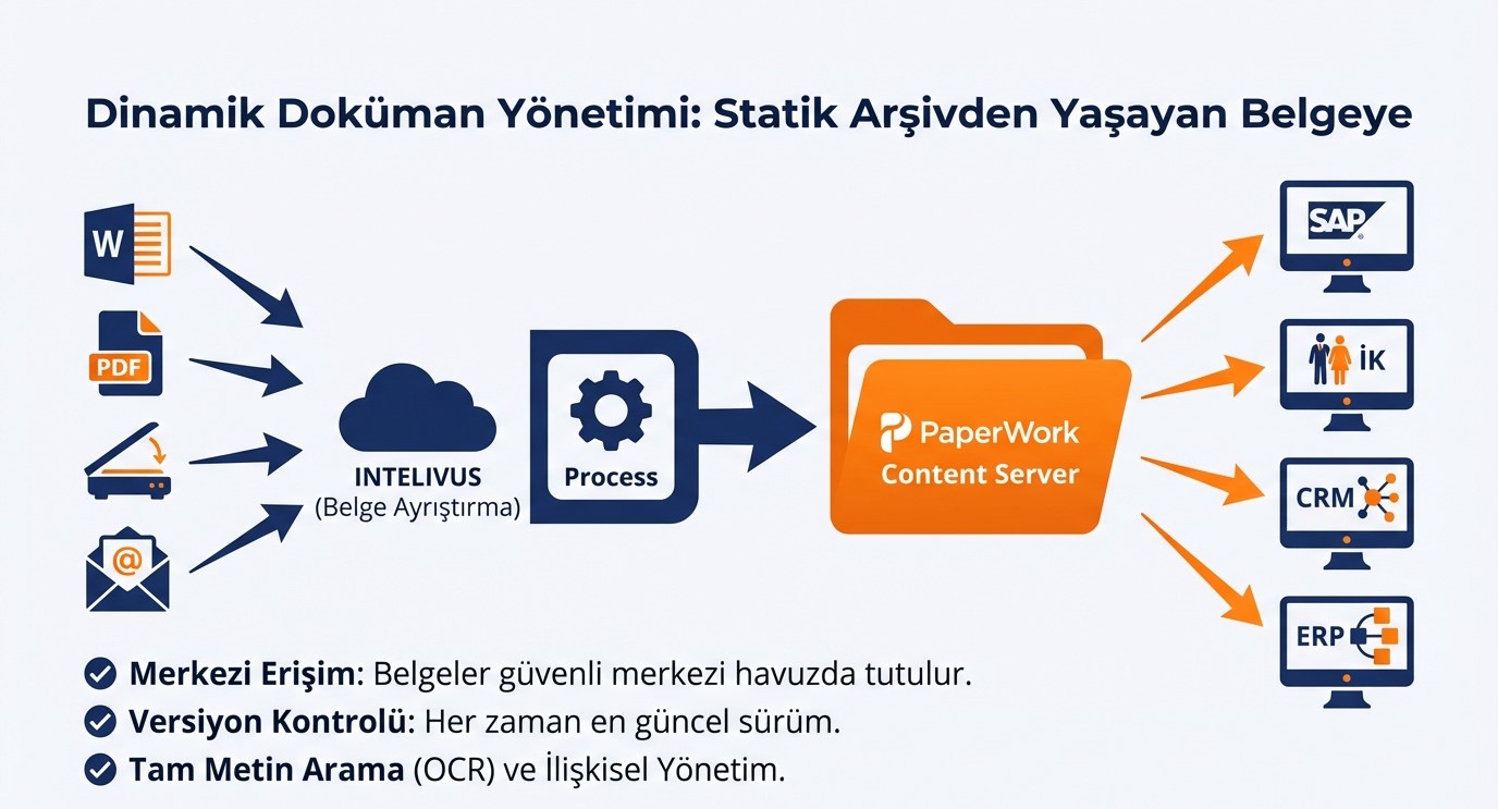 Intelivus, PaperWorkAI platformu üzerinde geliştirilen Akıllı Belge İşleme (IDP) çözümüdür. Belgeleri otomatik olarak okur, sınıflandırır, veri çıkarımı yapar ve kurumsal sistemlere entegre biçimde çalışır. Yapay zeka tabanlı mimarisi sayesinde kurumların dijital dönüşüm süreçlerinde stratejik bir rol üstlenir.