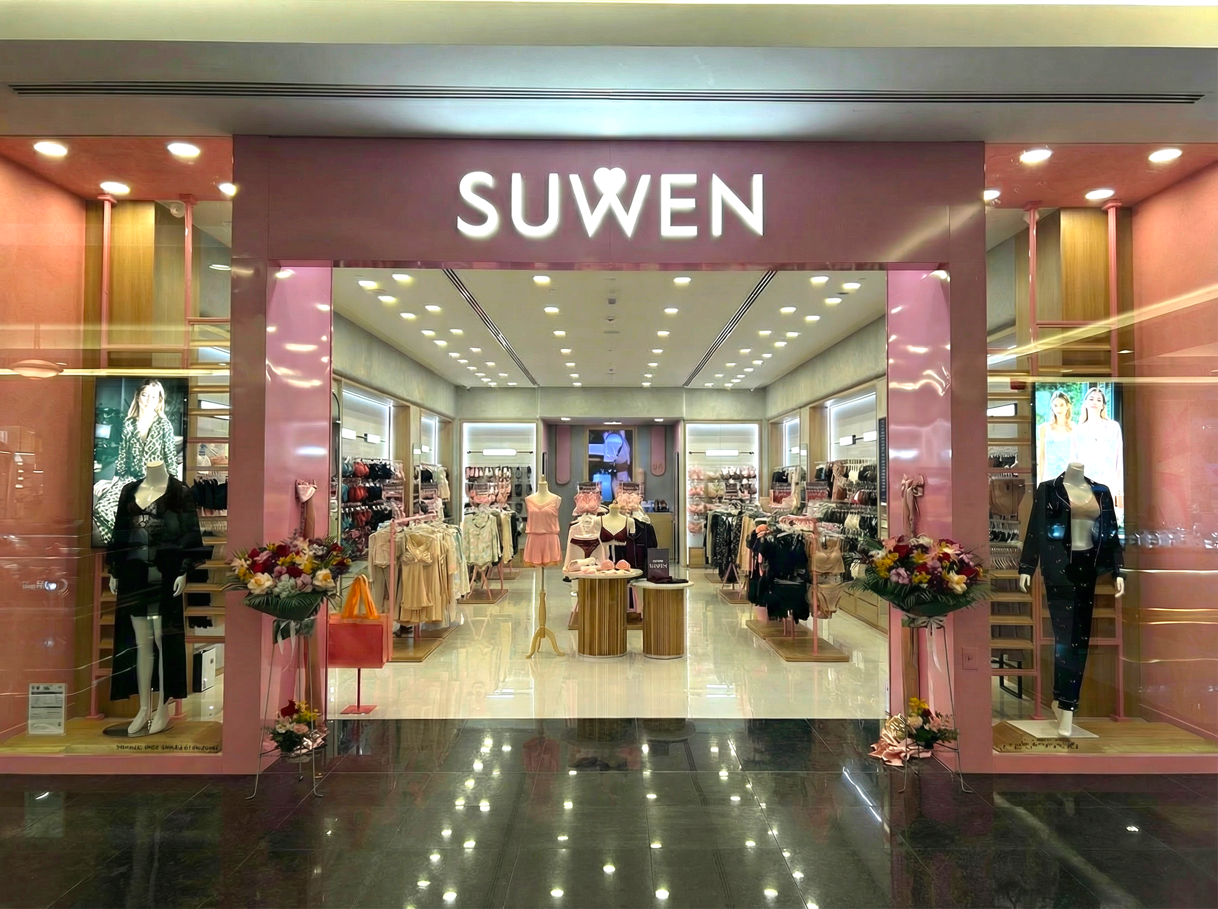 138 metrekarelik mağazada iç giyimden ev giyimine, pijama koleksiyonlarından çorap ve aksesuvarlara kadar markanın şıklık ve konforu bir arada sunan koleksiyonları bölge tüketicisiyle buluşuyor. Modern mağaza konsepti, Suwen’in global perakende yaklaşımını yansıtacak şekilde tasarlandı.